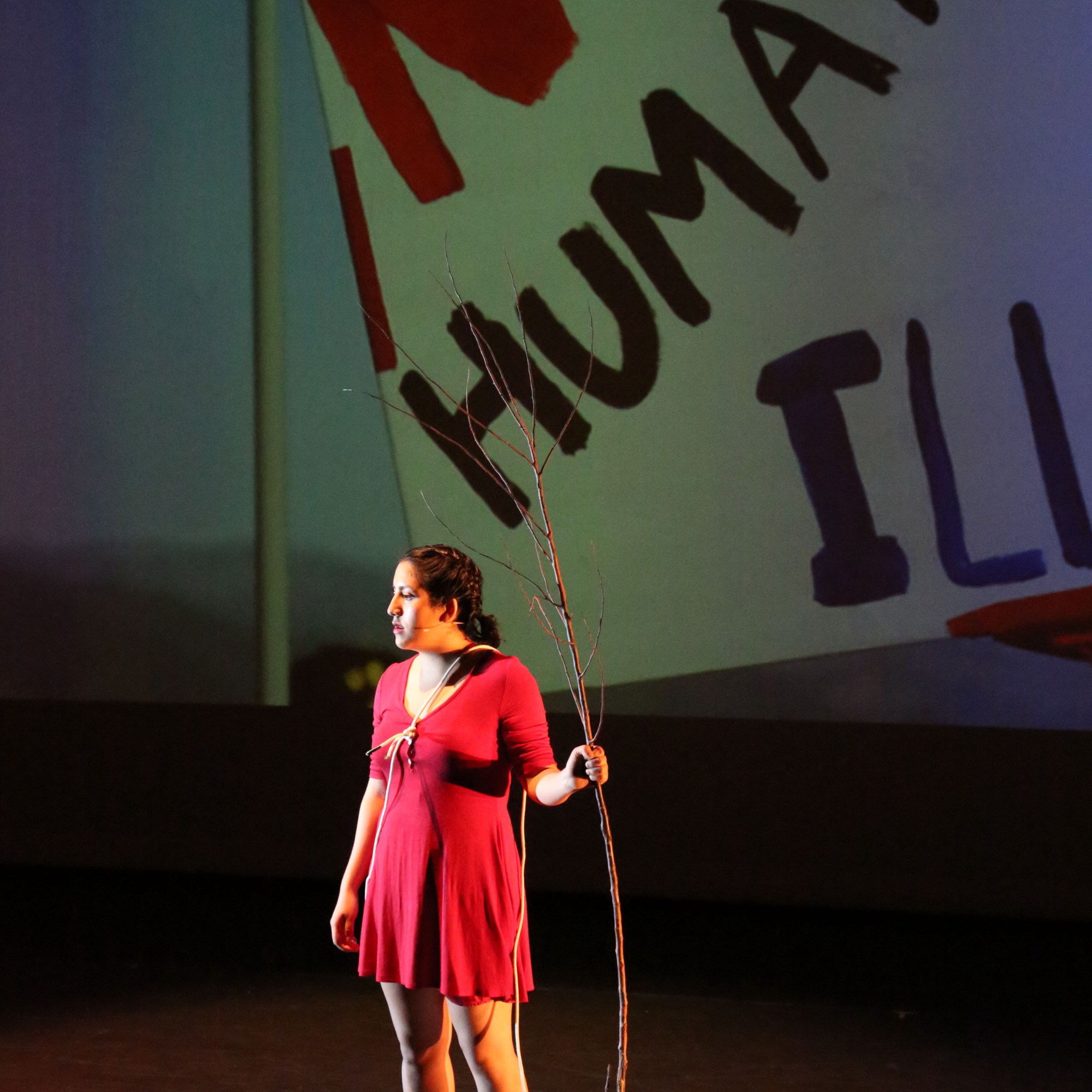 With multiple images, videos and sound cues, Landed is visually stimulating and requires intricate lighting to keep images vibrant. Images and sound were run in QLab, while lighting was done separately on a light board. The whole show could potentially be run from QLab, though neither theater had the upgraded version of the software.